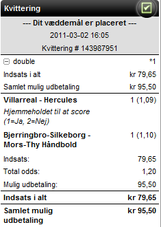 Totalindskud er 60, så det må være 20 pr væddemål