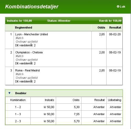 Første kamp af tre i hus. Det eneste, jeg ærger mig over lige nu, er, at, jeg kun smed 30 kr på dem