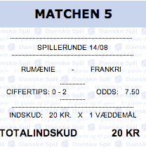 Så har jeg spillet.. 112 kr på Frankrig, og 10 kr på Benzema som første målscore KOM SÅ LE BLEU !!