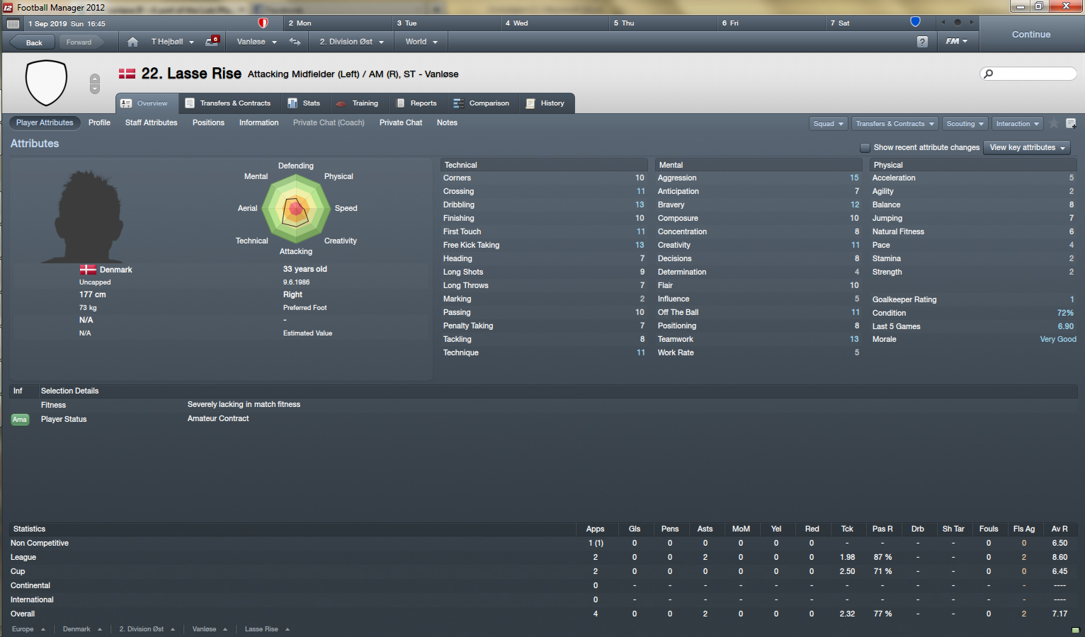 Spillede selv kun på 3. holdet!