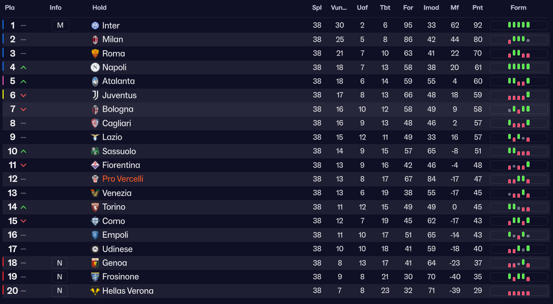 Pro Vercelli er ikke bare en Serie C-klub. Nej nej. Vi taler om en historisk gigant, et hold der engang sad på Italien som en kat sidder på en laptop: uafbrudt og uden hensyn til nogen som helst. De vandt mesterskabet syv gange i starten af 1900-tallet – og så stoppede de ellers der.