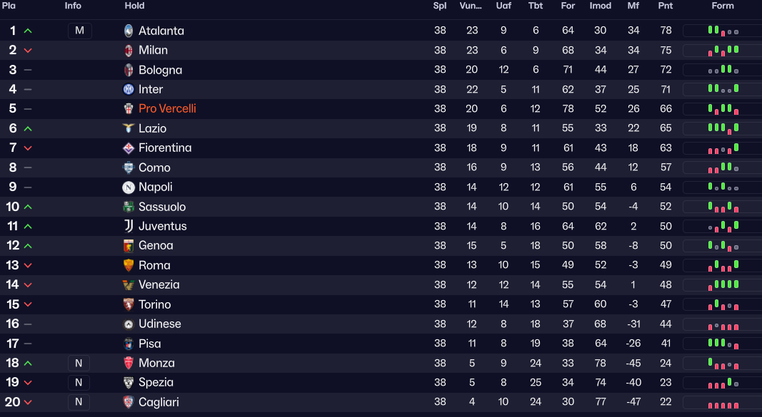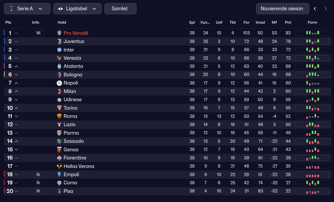 Pro Vercelli er ikke bare en Serie C-klub. Nej nej. Vi taler om en historisk gigant, et hold der engang sad på Italien som en kat sidder på en laptop: uafbrudt og uden hensyn til nogen som helst. De vandt mesterskabet syv gange i starten af 1900-tallet – og så stoppede de ellers der.
