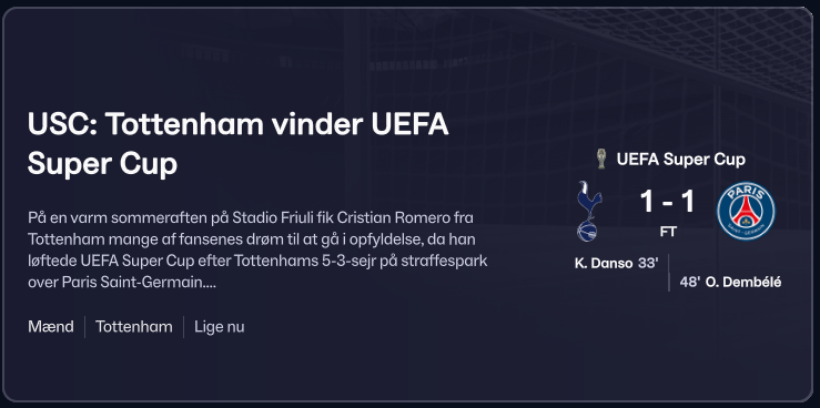 Tottenham Hotspur er en traditionsrig klub fra Nordlondon, kendt for offensiv fodbold, højt tempo og fokus på underholdning. Klubben har gennem historien været kendetegnet ved modet til at udvikle og satse på egne spillere, kombineret med en klar identitet om at spille fremadrettet fodbold. Med et af Europas mest moderne stadions og store ambitioner arbejder Spurs konstant på at etablere sig blandt Premier Leagues og Europas absolutte top.