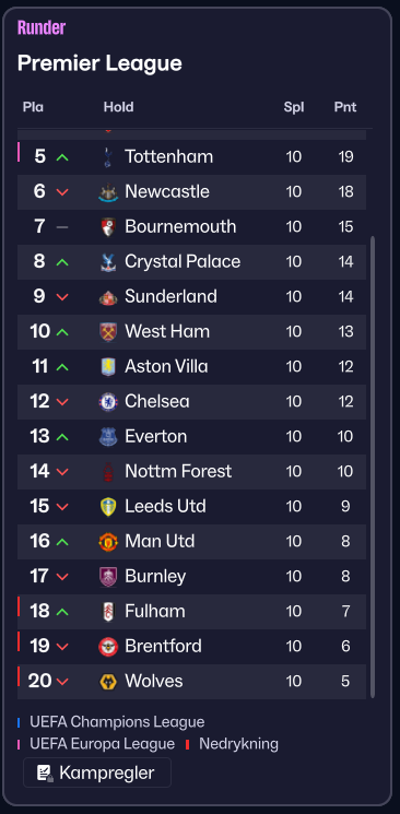 Så blev det min tur til at prøve kræfter med den her udfordring, hvor man skal simulere frem til den 6 November og vælge det hold som er på 19 pladsen i PL. Her kunne jeg med en lille smule glæde se at det kære Brentford lå placeret