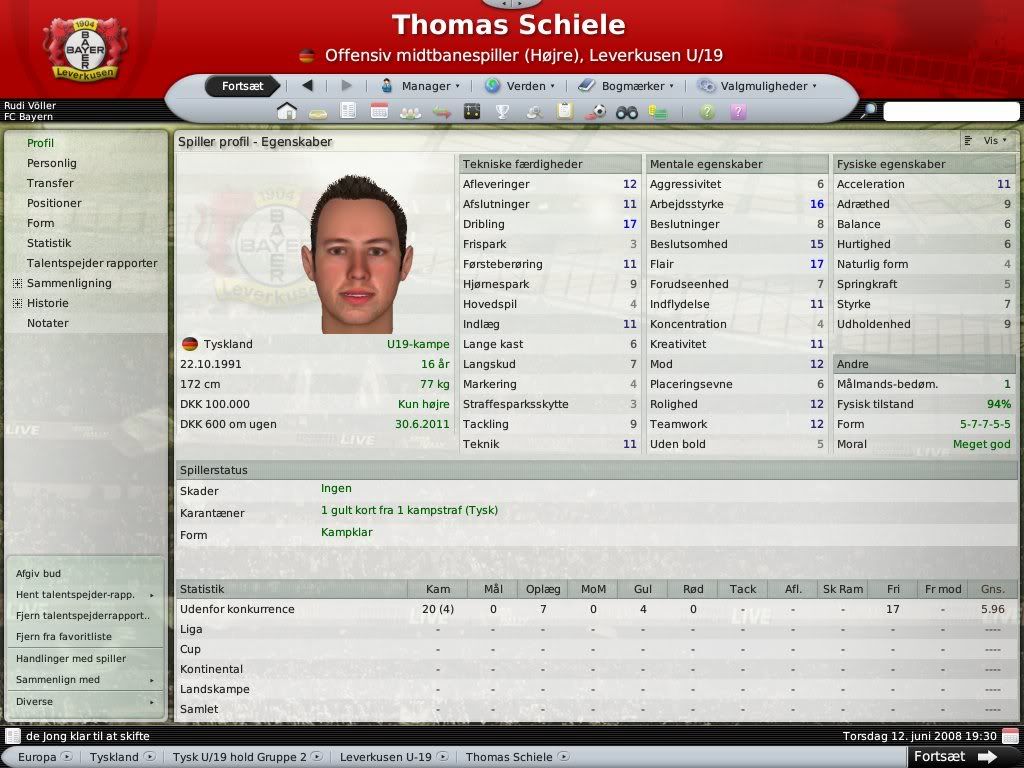 Jeg synes 17 i både dribling og flair er super godt som 16-årig, og de andre vigtige fløjstats ligger på de 11-12 stykker. Dog må han være virkelig, virkelig uintelligent, da han foretrækker hans 600 kr om ugen i Leverkusen frem for 325.000 i Bayern (forsøgte mig bare for sjov).