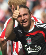 Efter at få annulleret et mål i mod sig i det 42. minut, kunne man så bringe sig ydligere foran bare minuttet efter det annulleret mål. Dirk Kuyt fik headet sit femte sæson træffer ind på Daniel Aggers frispark, og så var Liverpool-spillerne klar til pause, og det kostede. Pablo begik nemlig straffe imod Dean Ashton langt inde i overtiden. Selvsamme Ashton scorede sikkert.